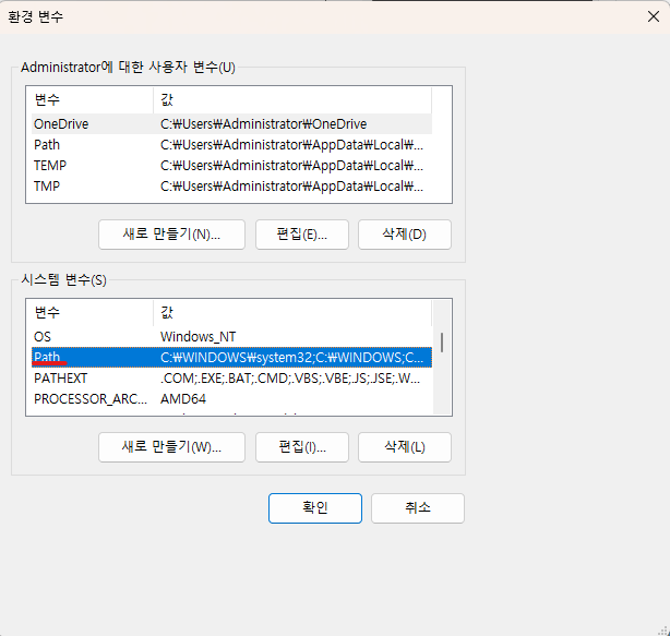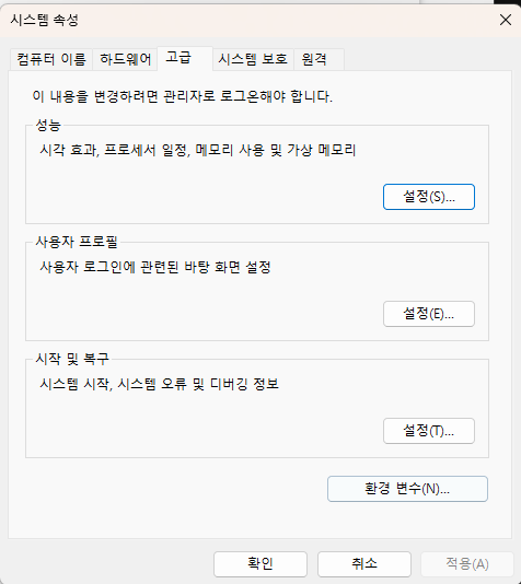 경로를 추가한 뒤 시스템 재부팅하기