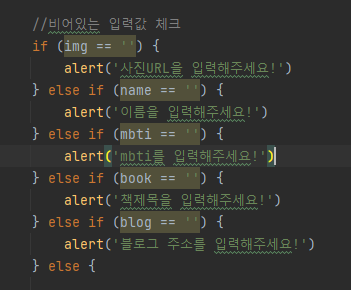 다행히 정현균님이 fetch를 이용한 기본 골격을 잘 만들어주셔서 해결하고 오타, 문법 오류, 코딩 방향성까지 잘 말씀해주셔서 time함수와 record함수의 입력 값 체크 코드를 작성할 수 있었습니다.